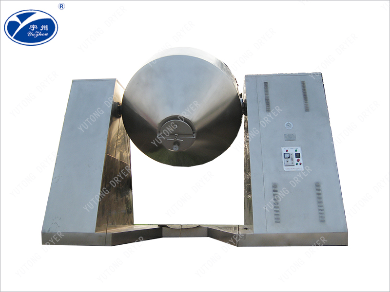 SZG series double-cone rotary vacuum dryer is a double-cone rotary tank. In the vacuum state, steam or hot water is heated into the jacket, and the heat is in contact with the wet material through the inner wall of the tank. The vapor evaporates after the wet material absorbs heat and is pumped away through the vacuum pump through the vacuum exhaust pipe. Because the tank is in a vacuum state, and the rotation of the tank makes the material constantly up and down, inside and outside, it speeds up the drying speed of the material, improves the drying efficiency, and achieves the purpose of uniform drying.