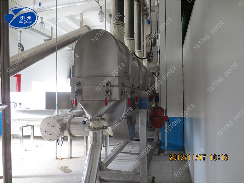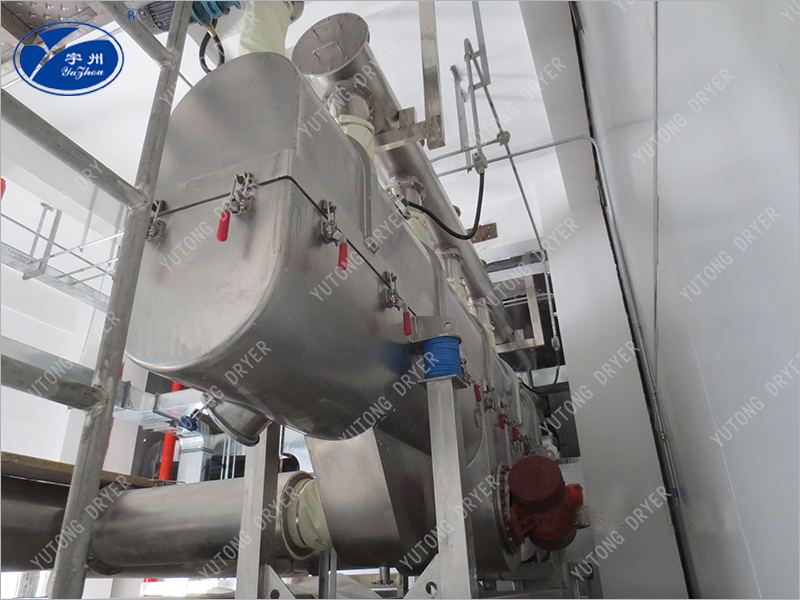 3, due to the application of vibration, the minimum fluidizing gas speed can be reduced, which can significantly reduce the air demand, and then reduce the dust layer entailing, supporting heat sources, fans, cyclone separators, etc., can also be reduced accordingly, complete sets of equipment reduced, energy saving effect is obvious. The in-machine residence time can be easily changed by adjusting vibration parameters. The operation of the piston flow reduces the requirements of material particle size uniformity and regularity, and it is easy to obtain uniform dry products.