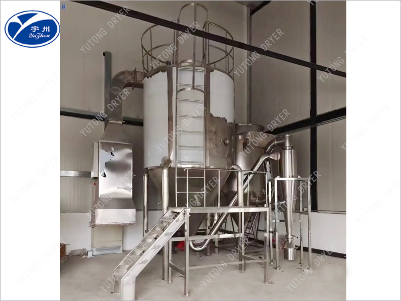 After being heated by clean air, it enters the drying tower and is transformed into tiny droplets using a two fluid (or three fluid) nozzle in the hot air inside the tower. It undergoes rapid heat exchange with the hot air, evaporates the water (or solvent) in the liquid material, and is discharged with the hot air to obtain powdered products.