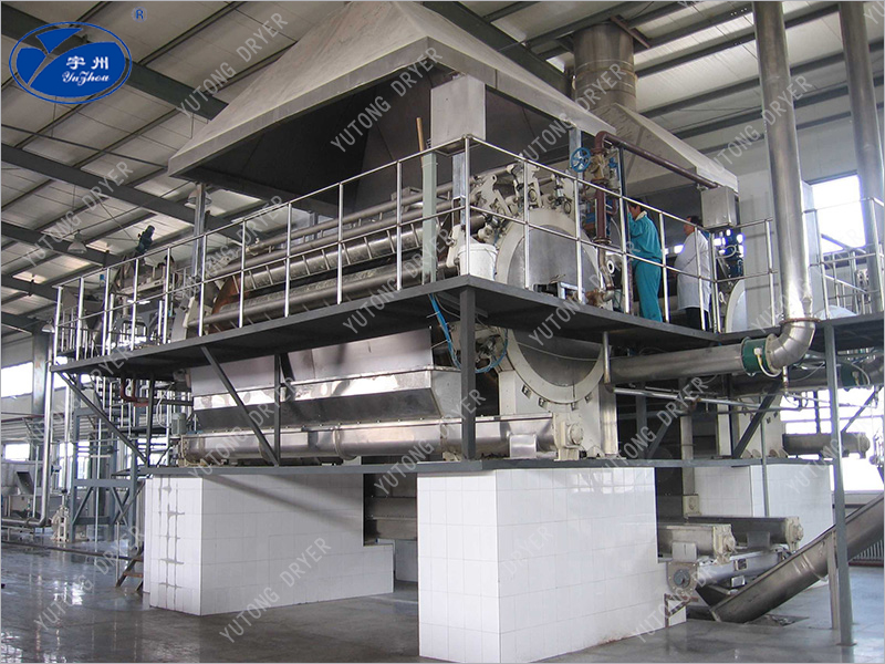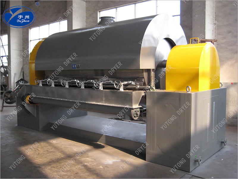 1, high thermal efficiency. The heat transfer mechanism of the drum scraper dryer is heat conduction, and the heat transfer direction is consistent throughout the operation cycle. In addition to the heat dissipation and heat radiation loss of the cover, the rest of the heat is used for the evaporation of the wet material film on the cylinder wall, and the thermal efficiency can reach 70%-80%.