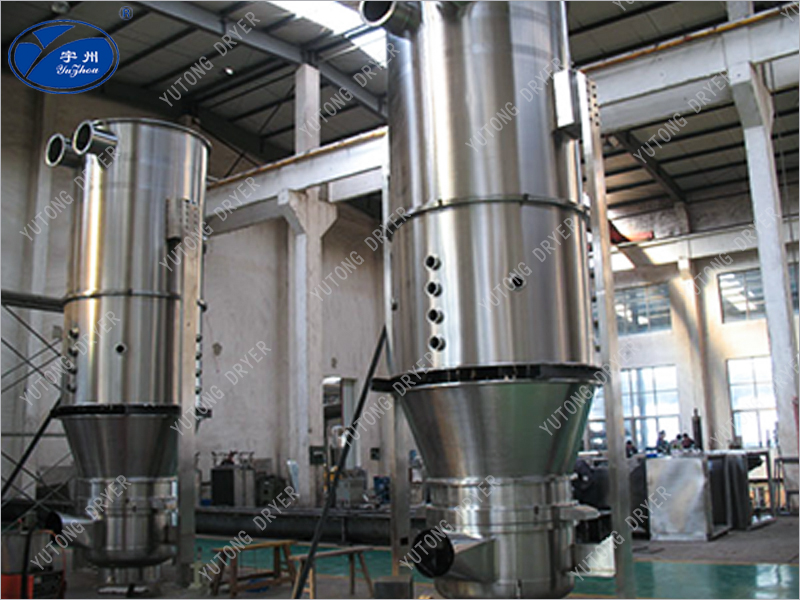 The fluidized bed air distribution plate is made into a special annular plate structure, with each plate forming a stacked form, allowing the airflow to pass through the gaps between the blades, forming a circulating high-speed airflow, thereby making the material move in a regular vortex like manner. The adhesive or coating liquid is sprayed into the regular flow material layer through the pneumatic nozzle installed on the side wall, thereby turning the powder into particles or obtaining a continuous and uniform film coating.