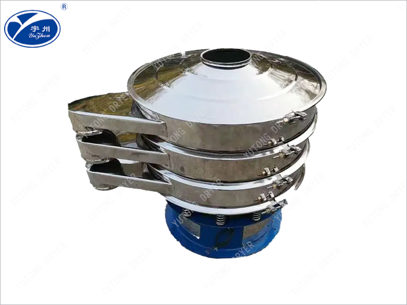 This machine consists of a hopper, an oscillation chamber, a coupling, and a motor. The oscillation chamber is composed of an eccentric wheel, rubber cushion, main shaft, bearings, etc. The adjustable eccentric heavy hammer is driven by a motor to reach the center line of the main shaft, generating centrifugal force in an unbalanced state, which changes the strength of the material and forms a track vortex inside the screen. The amplitude of the heavy hammer adjuster can be adjusted according to different materials and sieves.