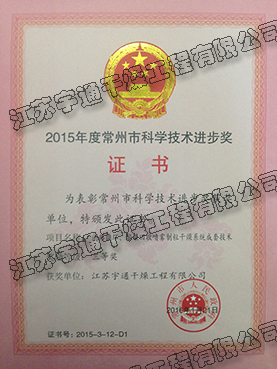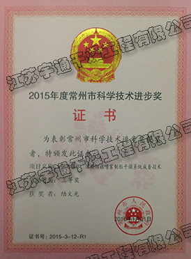 江蘇宇通干燥工程有限公司榮獲“常州市科學技術進步獎“