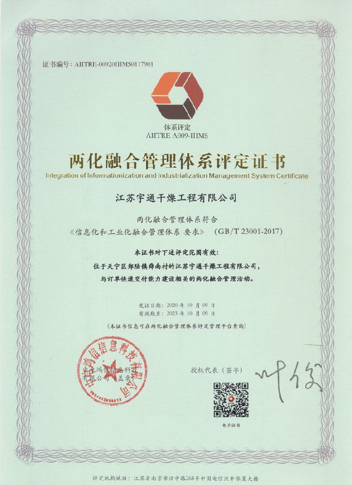 兩化融合管理體系評定證書
