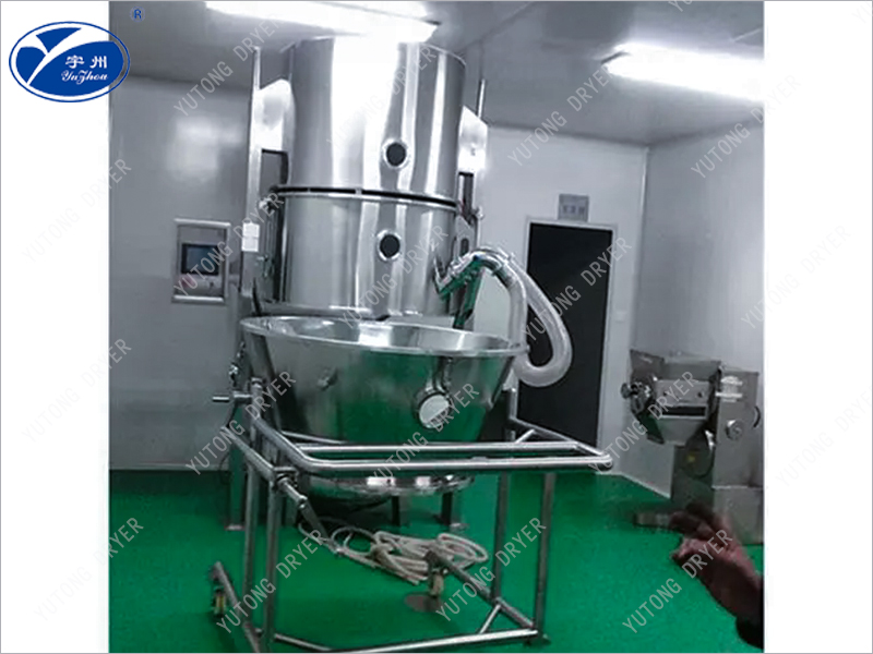 流化床分風板做成特殊環形片式結構,各片形成層疊形式,讓氣流從葉片的間隙通過,形成環流狀的高速氣流,從而使物料呈旋渦狀似的規則運動,通過安裝在側壁的氣動噴嘴將粘合劑或包衣液噴入規則流物料層,從而將粉體制成顆粒或得到連續均勻的膜衣。