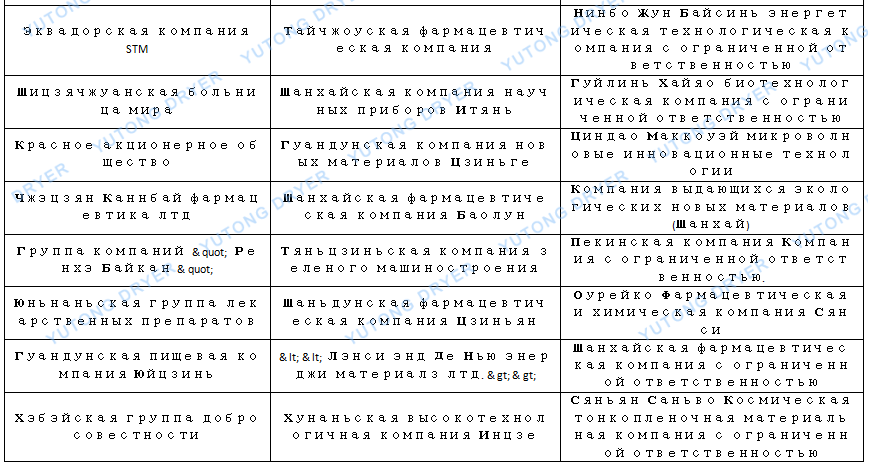 Список пользователей центробежных распылительных сушилок серии LPG: