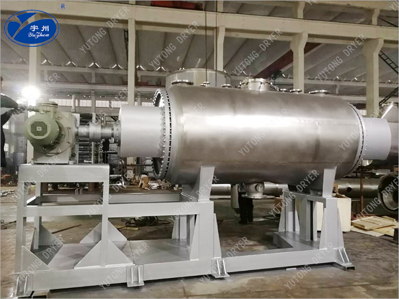 Эта машина представляет собой новый тип горизонтального прерывистого вакуумного сушильного оборудования. Влажный материал испаряется через проводимость и оснащается скребковым блендером, чтобы непрерывно удалять материал с внутренней стенки и перемещать его по контейнеру, образуя циркулирующий поток. После испарения вода откачивается вакуумным насосом.